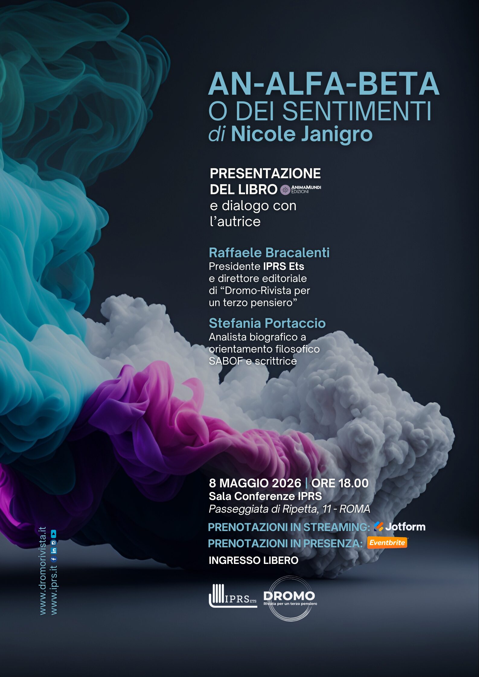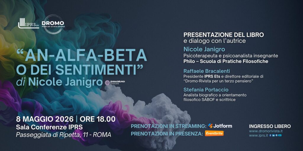 Venerdì 8 maggio 2026, dalle ore 18.00, l’Istituto Psicoanalitico per le Ricerche Sociali (IPRS ets) e DROMO Rivista per un terzo pensiero presentano il libro edito da AnimaMundi: