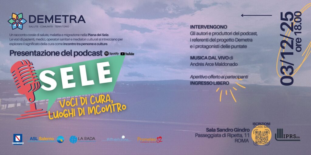 L’Istituto Psicoanalitico per le Ricerche Sociali – IPRS Ets ospita la presentazione romana di “SELE. Voci di cura, luoghi di incontro”, il podcast in otto episodi dedicato alle storie di salute, malattia e migrazione nella Piana del Sele.