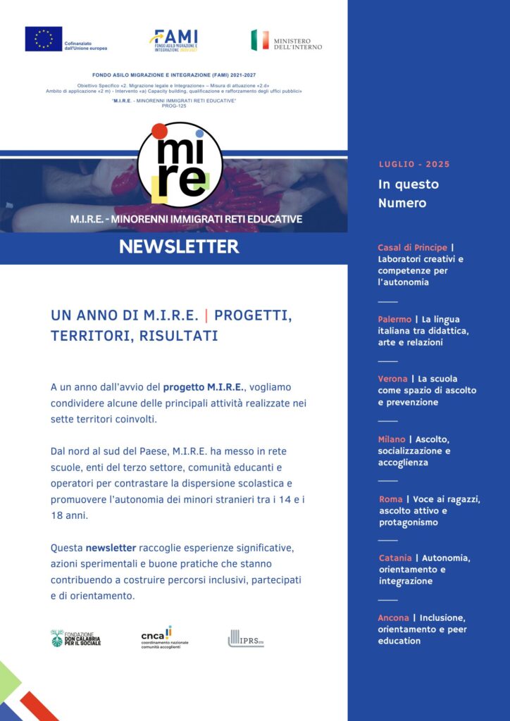 La newsletter raccoglie esperienze, buone pratiche e azioni che favoriscono inclusione, partecipazione e orientamento, per contrastare la dispersione scolastica e sostenere l’autonomia dei minori stranieri tra i 14 e i 18 anni.
